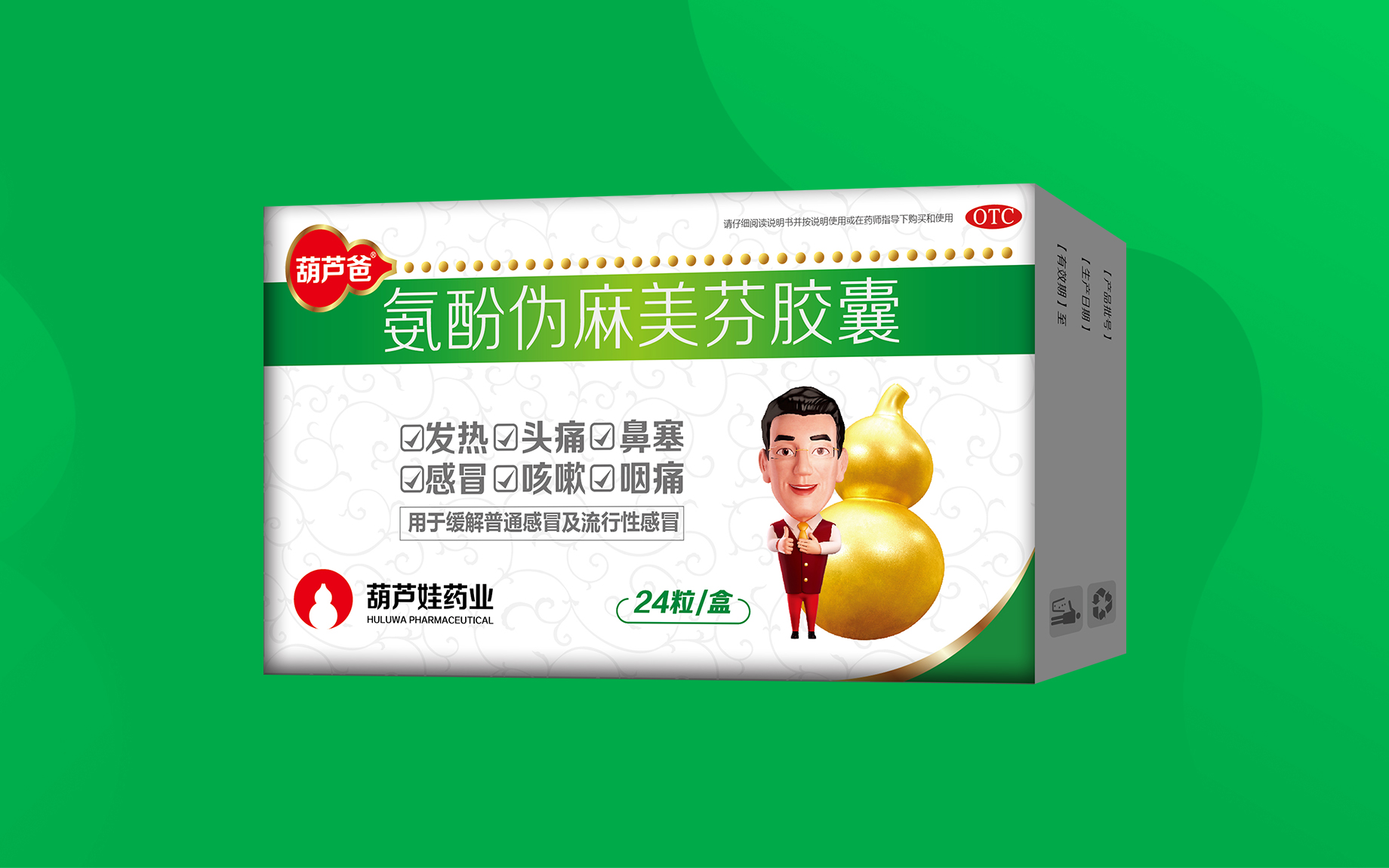 本品为复方制剂,每粒含对乙酰氨基酚325毫克,盐酸伪麻黄碱30毫克,氢溴酸右美沙芬15毫克。 辅料为:聚维酮K30、羟丙纤维素、羧甲淀粉钠、硬脂酸镁。